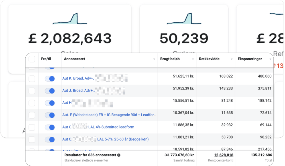 Vi opbygger en komplet kunderejse med dybt koordinerede touchpoints på tværs af forskellige platforme. Denne strategi kan endda øge din Meta-omsætning og email success.